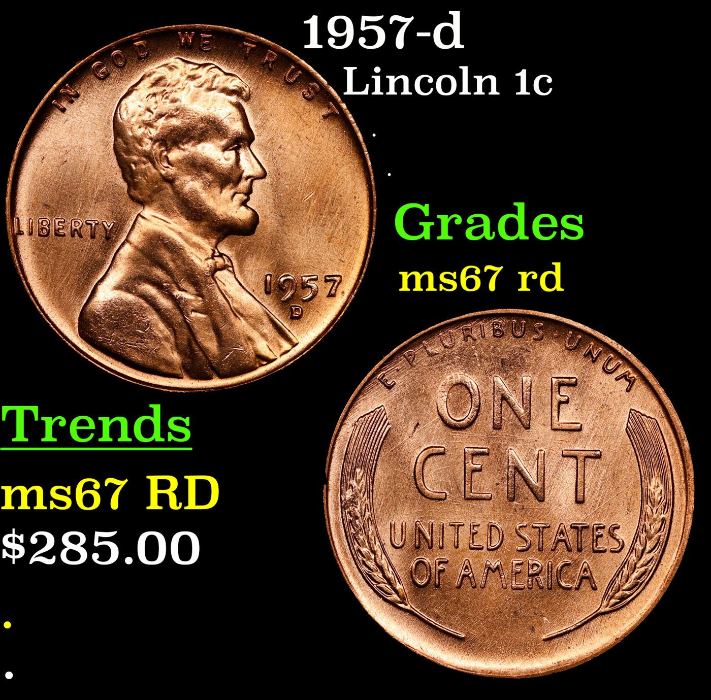 1957-d Lincoln Cent 1c Grades GEM++ Unc RD.