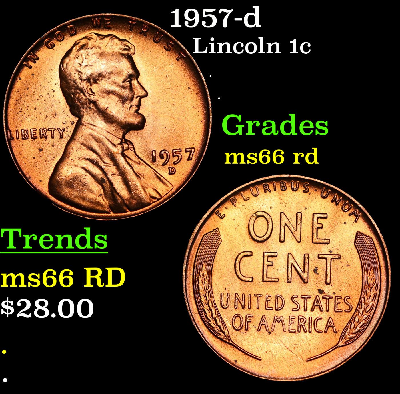 1957-d Lincoln Cent 1c Grades GEM+ Unc RD.