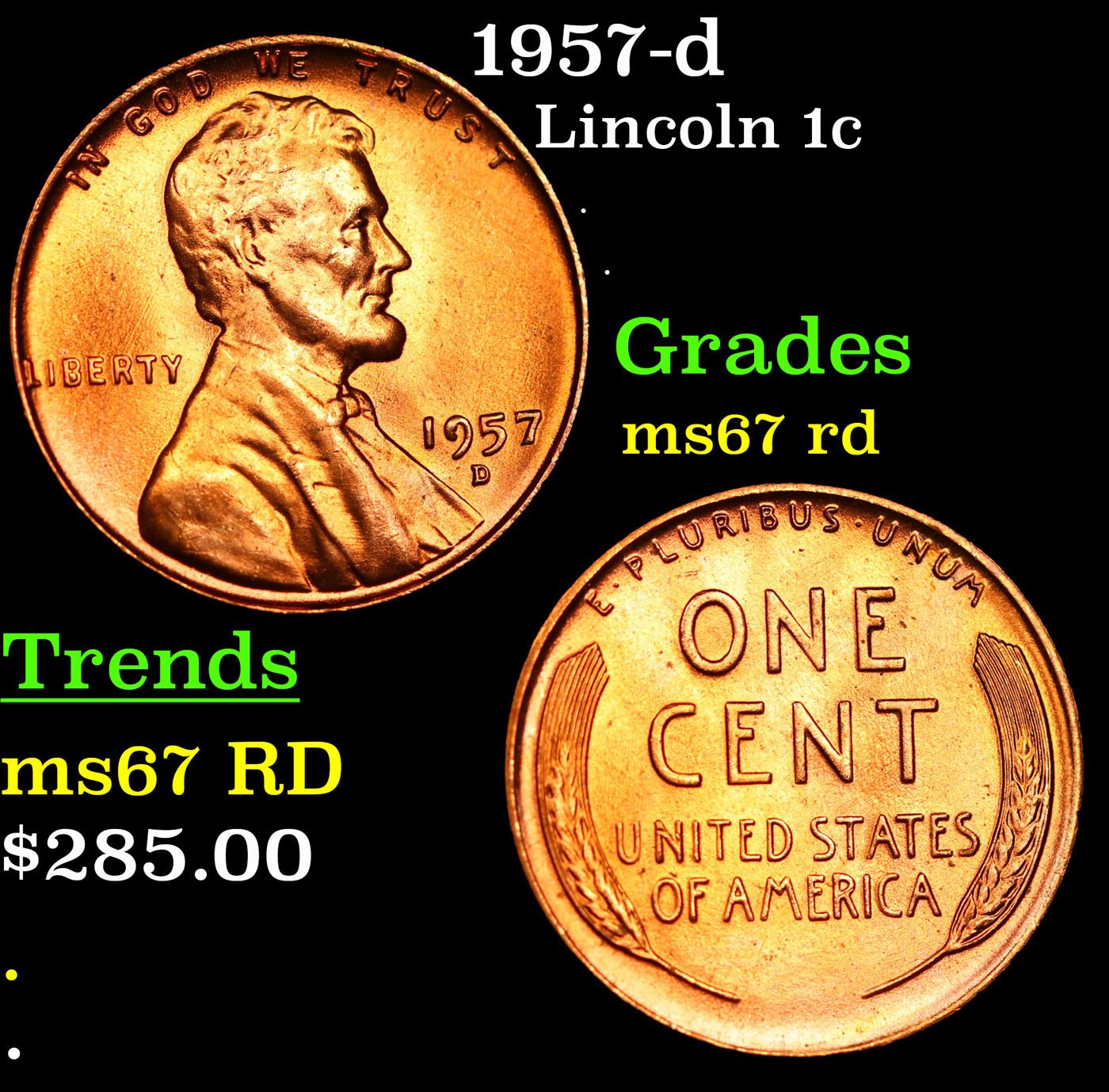 1957-d Lincoln Cent 1c Grades GEM++ Unc RD.