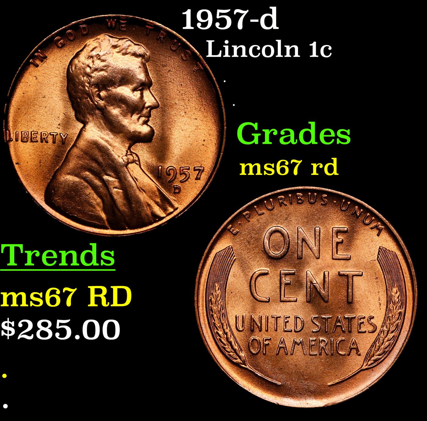1957-d Lincoln Cent 1c Grades GEM++ Unc RD.