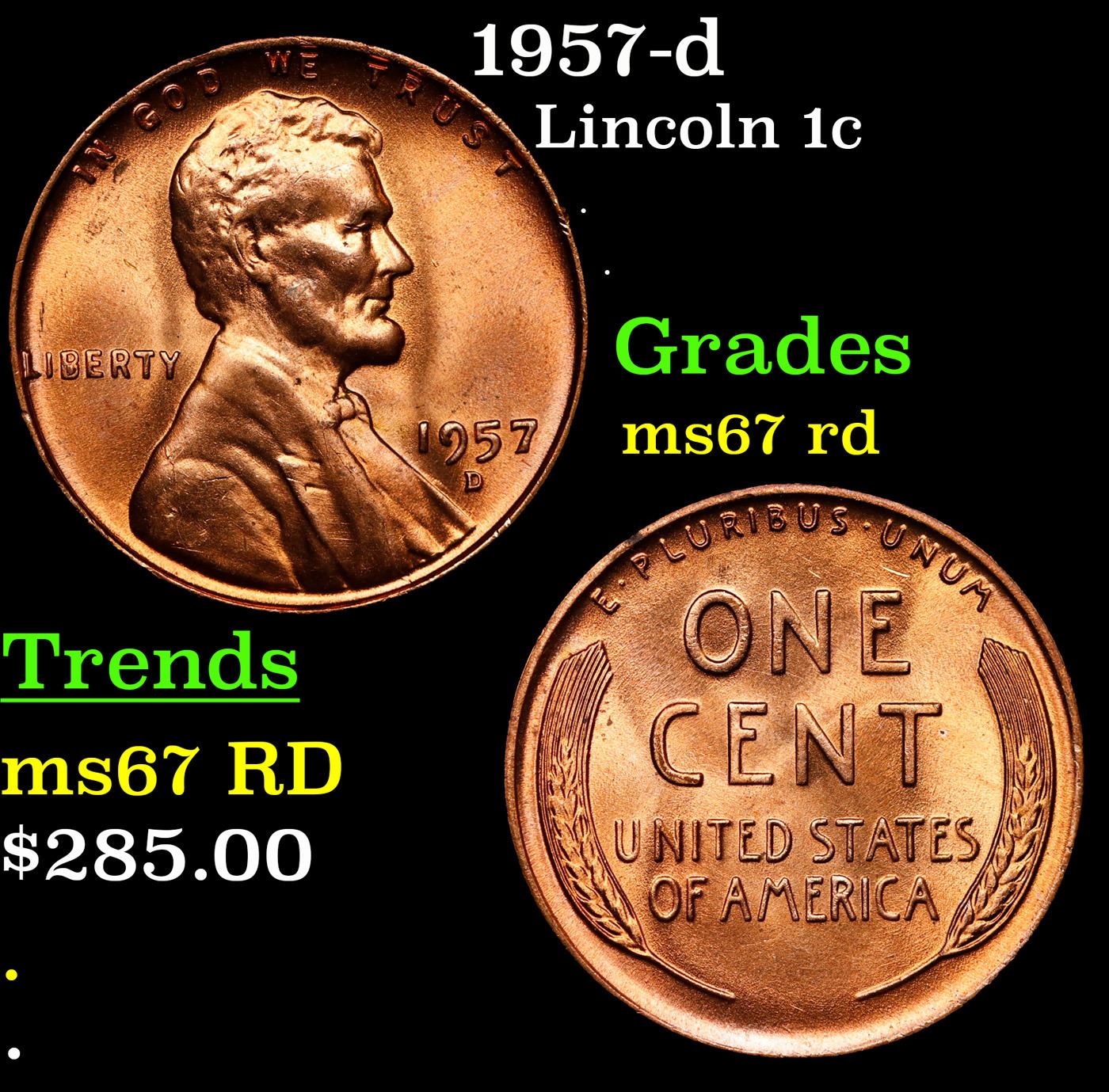 1957-d Lincoln Cent 1c Grades GEM++ Unc RD.