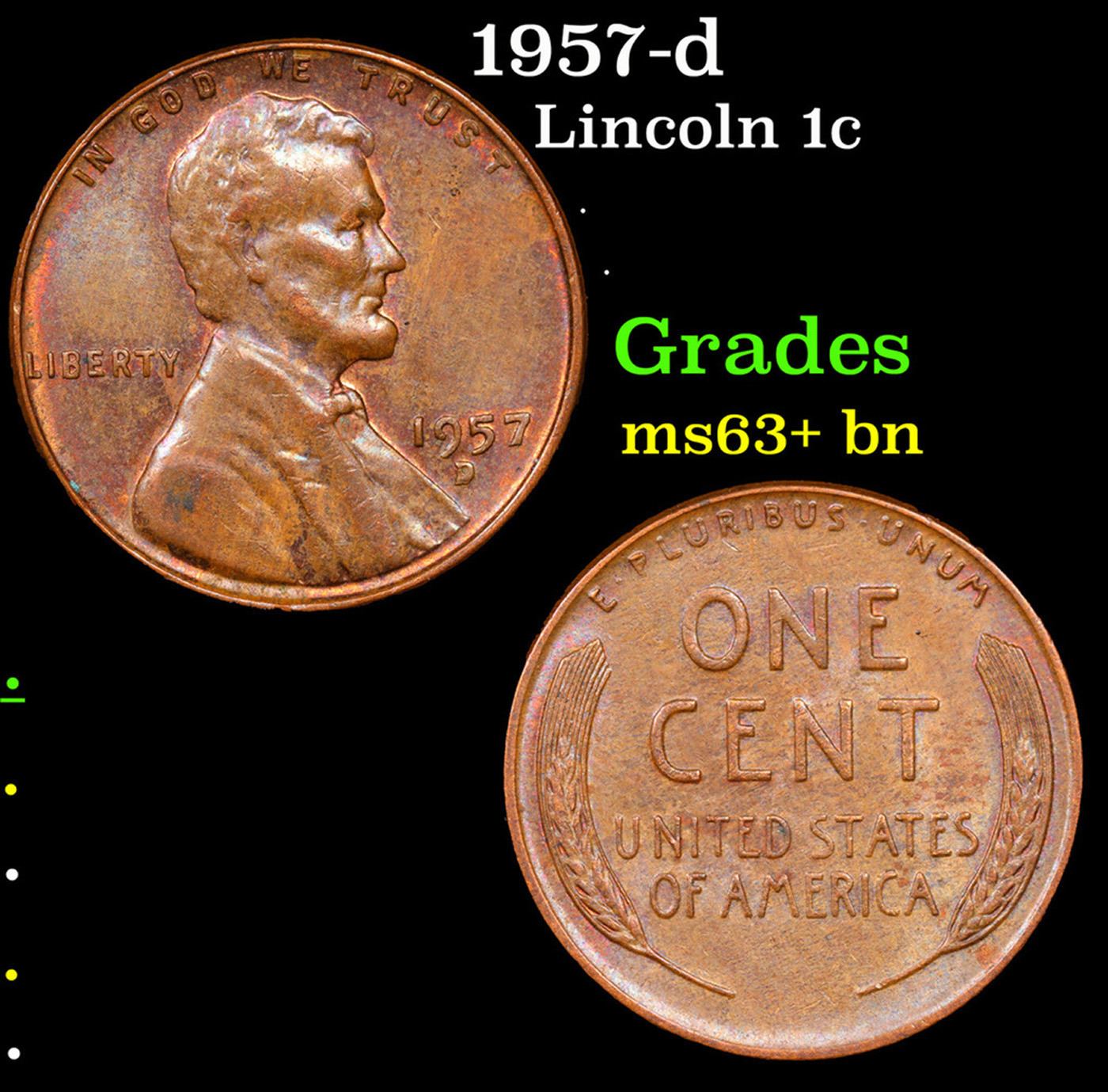 1957-d Lincoln Cent 1c Grades Select+ Unc BN.