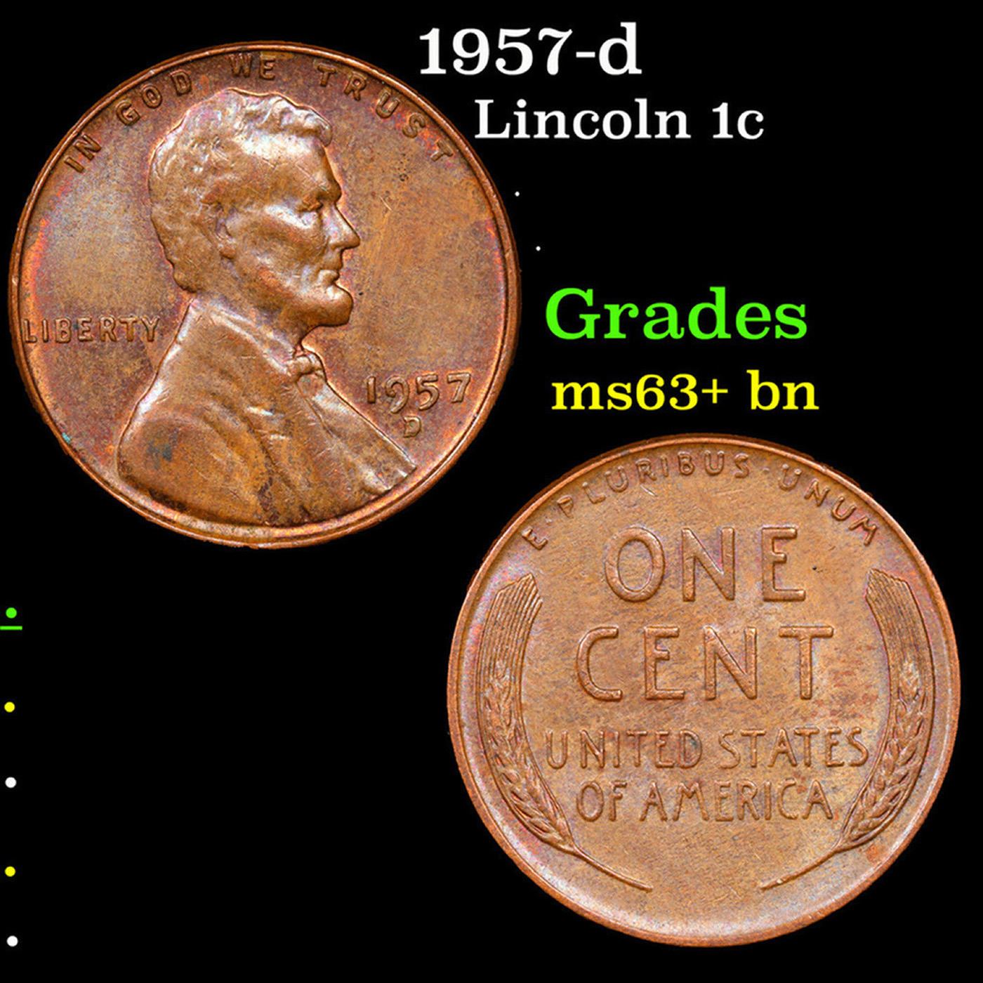 1957-d Lincoln Cent 1c Grades Select+ Unc BN.