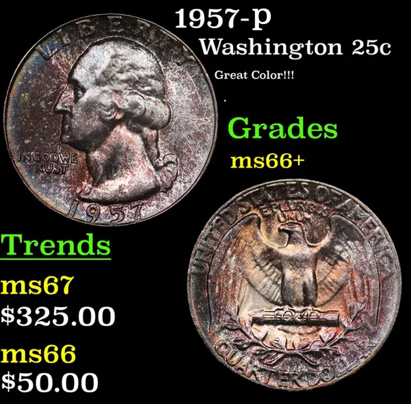 1957-d Washington Quarter 25c Grades GEM++ Unc.