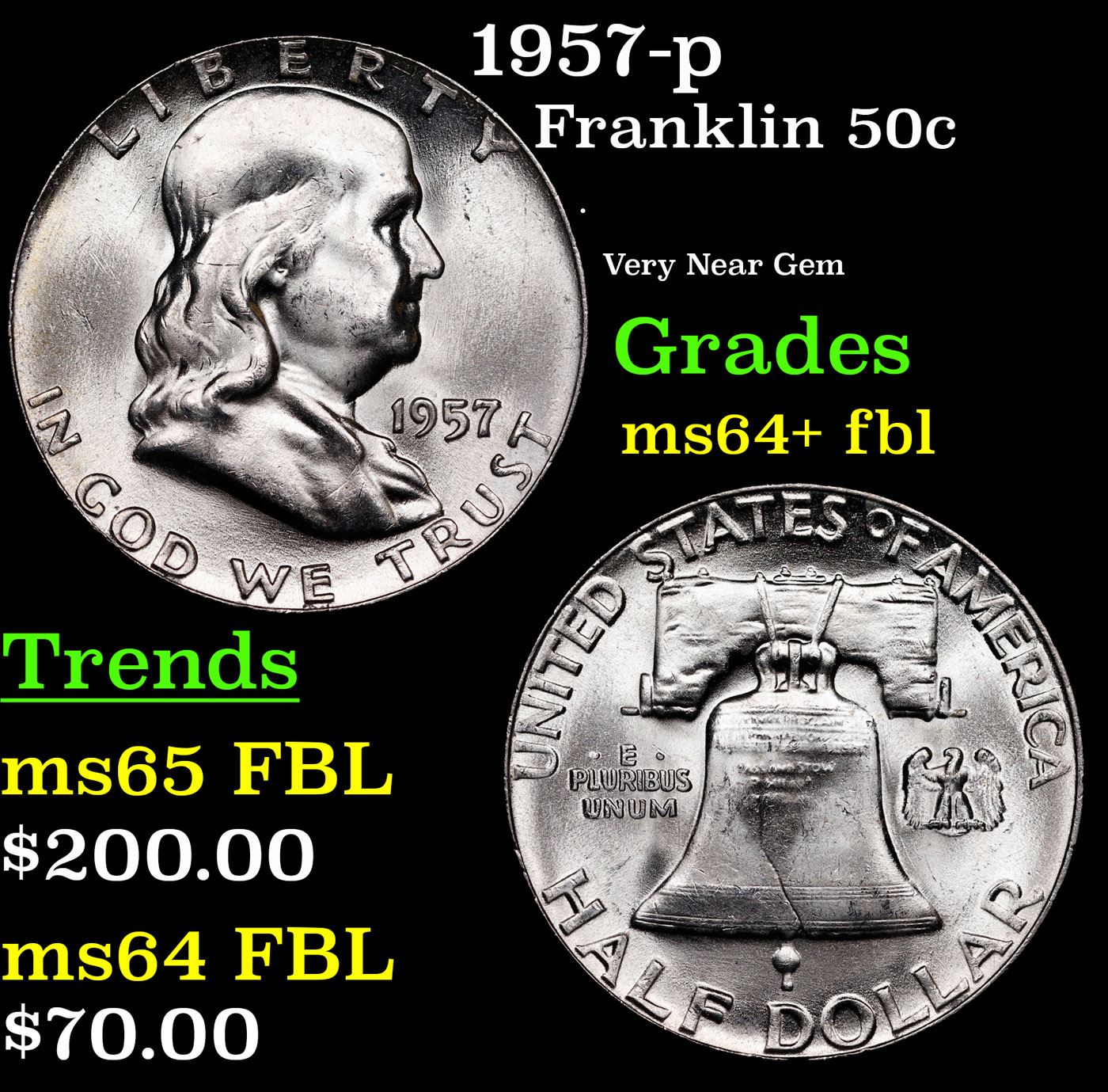 1957-p Franklin Half Dollar 50c Grades Choice Unc+ FBL.