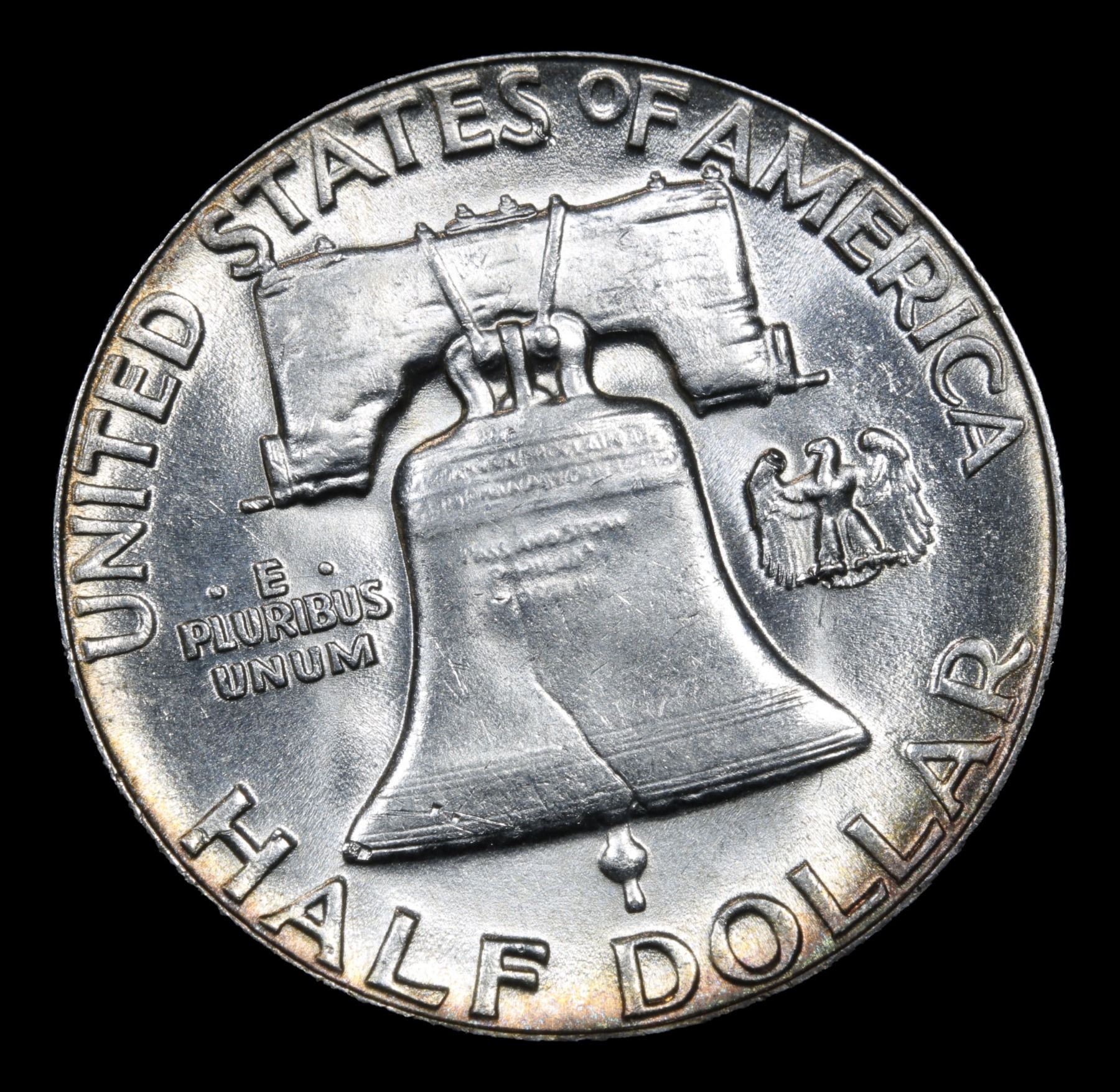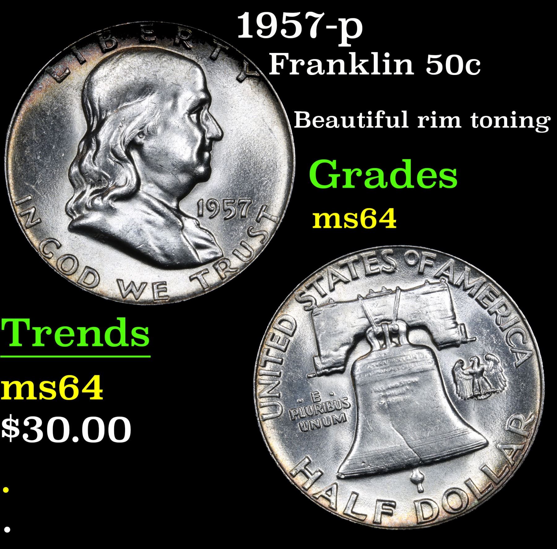 1957-p Franklin Half Dollar 50c Grades Choice Unc. Beautiful rim toning