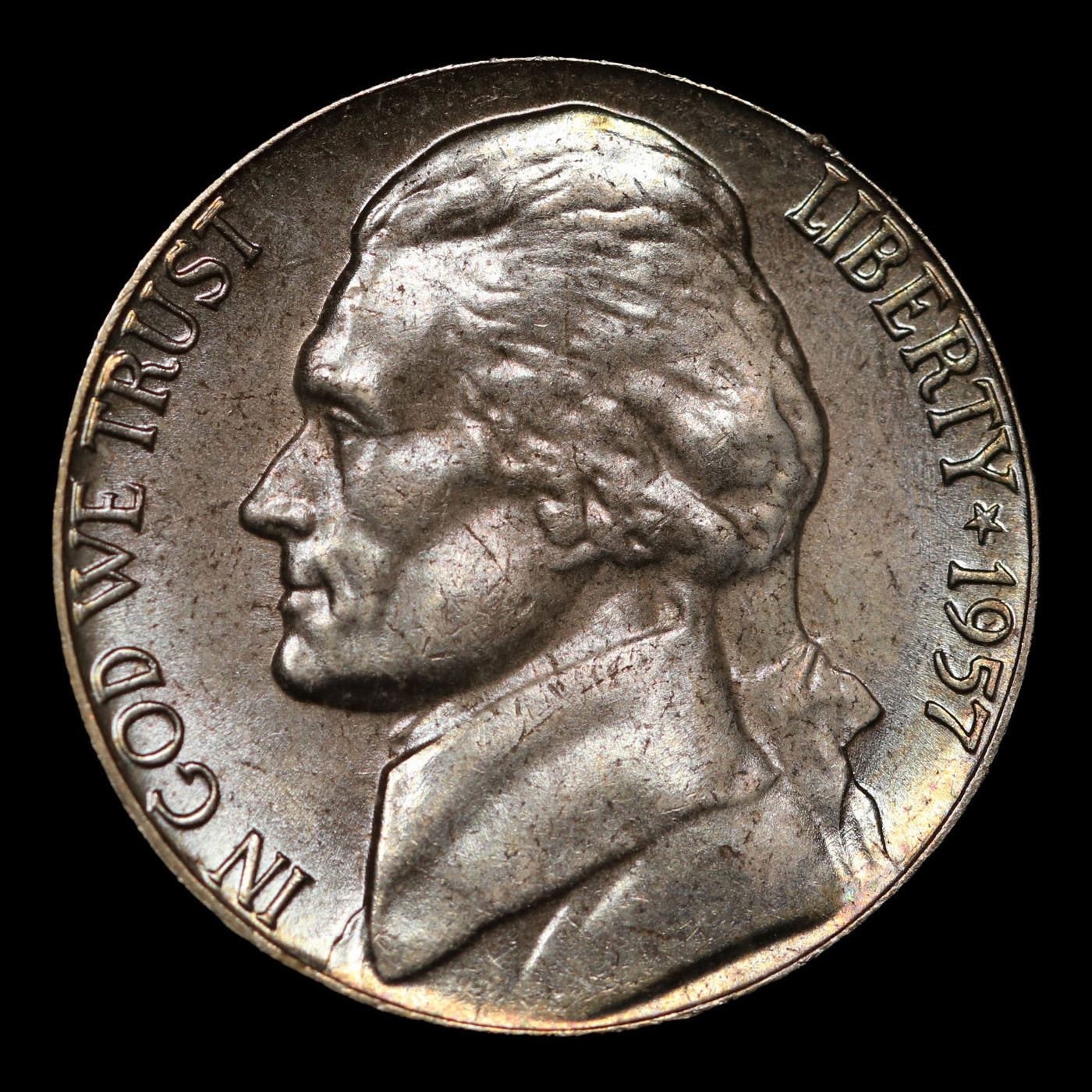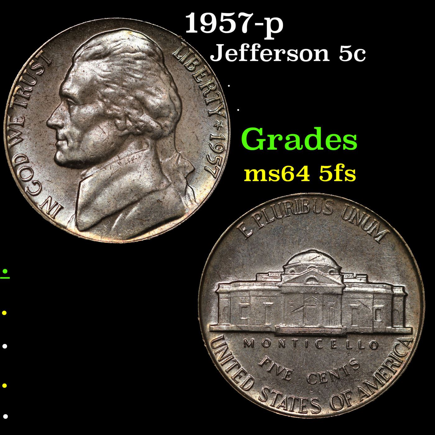 1957-p Jefferson Nickel 5c Grades Choice Unc 5fs.