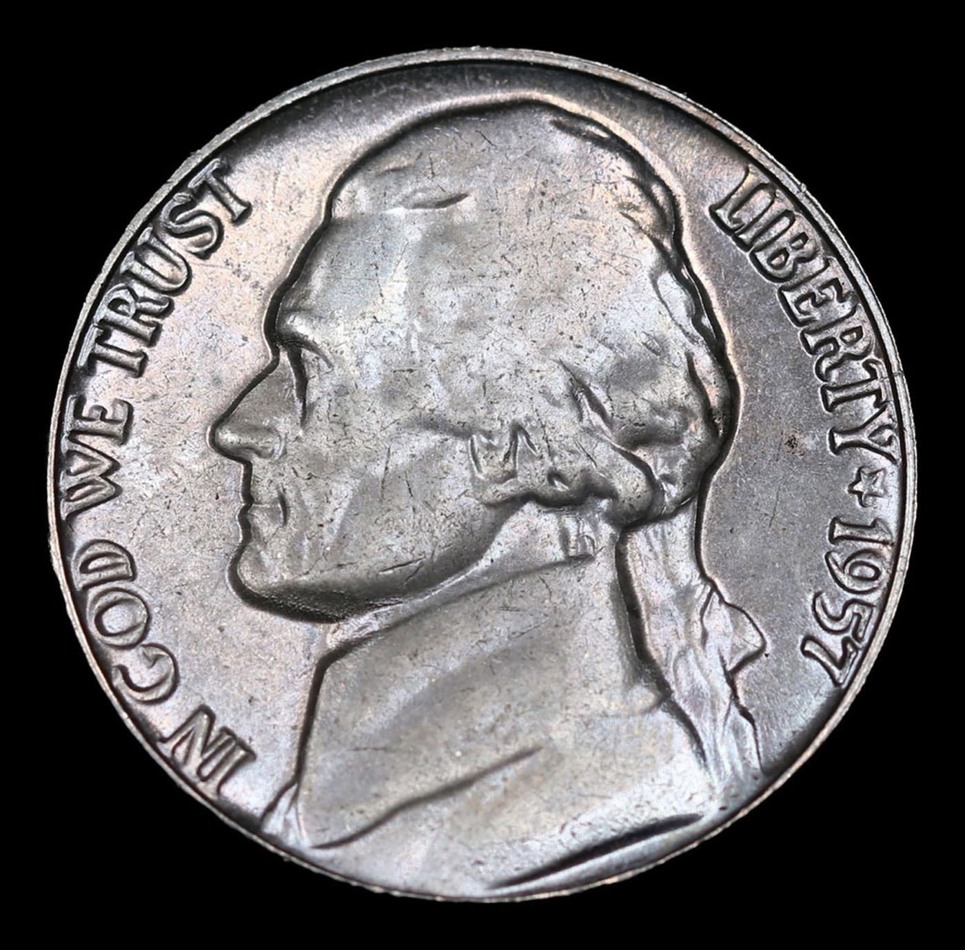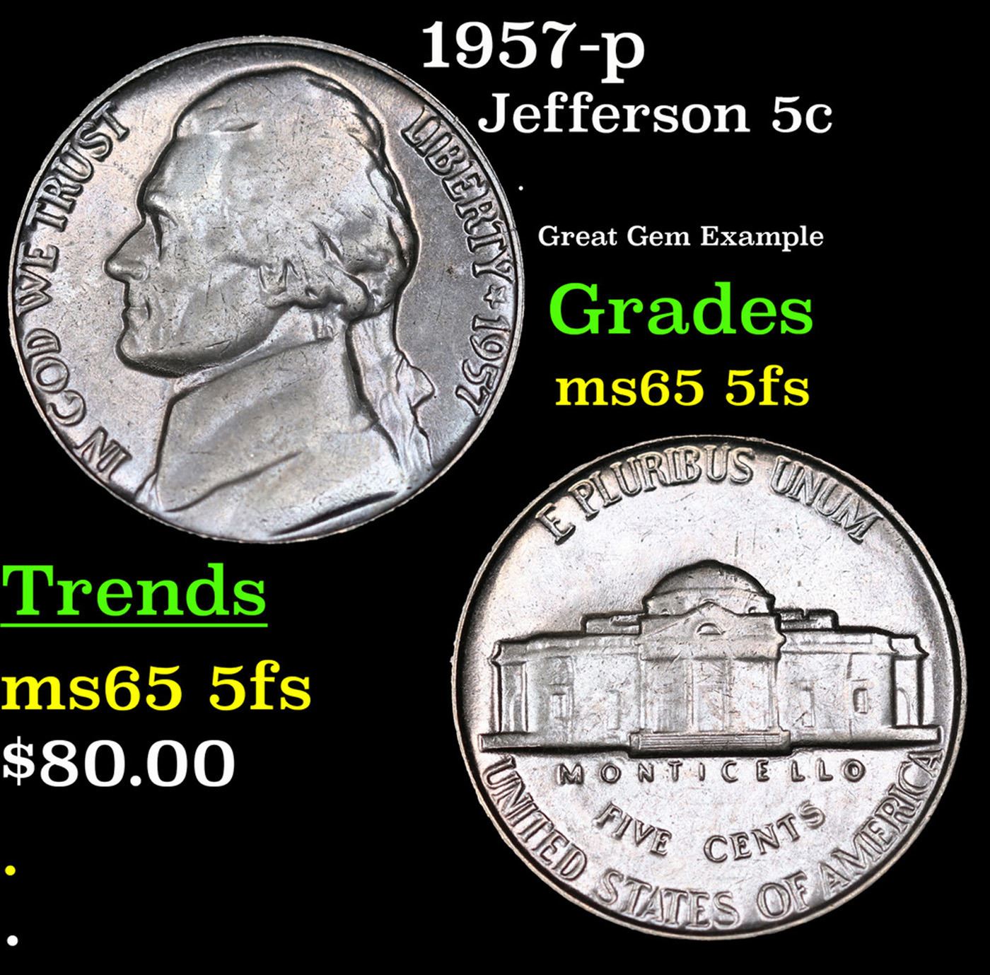 1957-p Jefferson Nickel 5c Grades GEM 5fs.