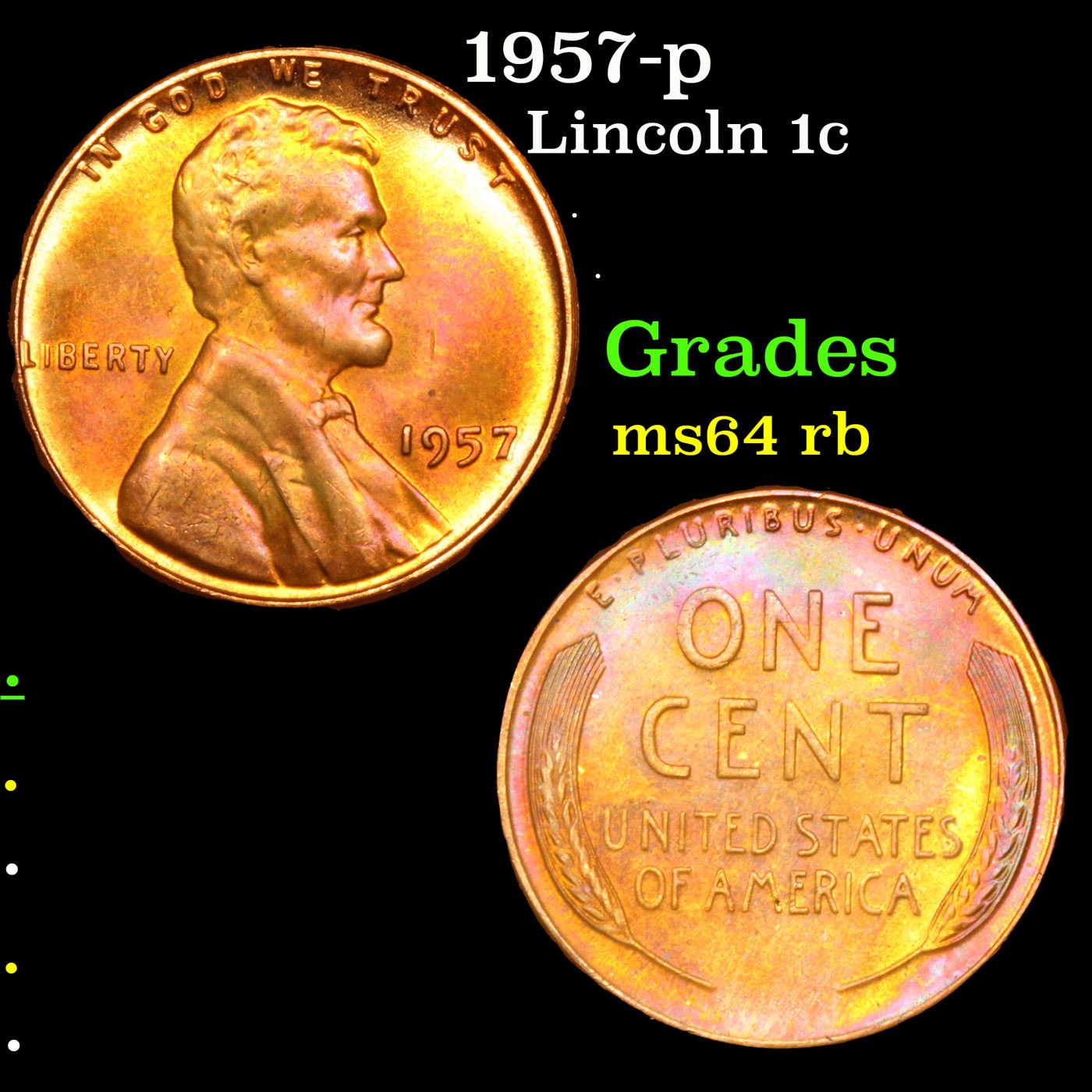 1957-p Lincoln Cent 1c Grades Choice Unc RB.