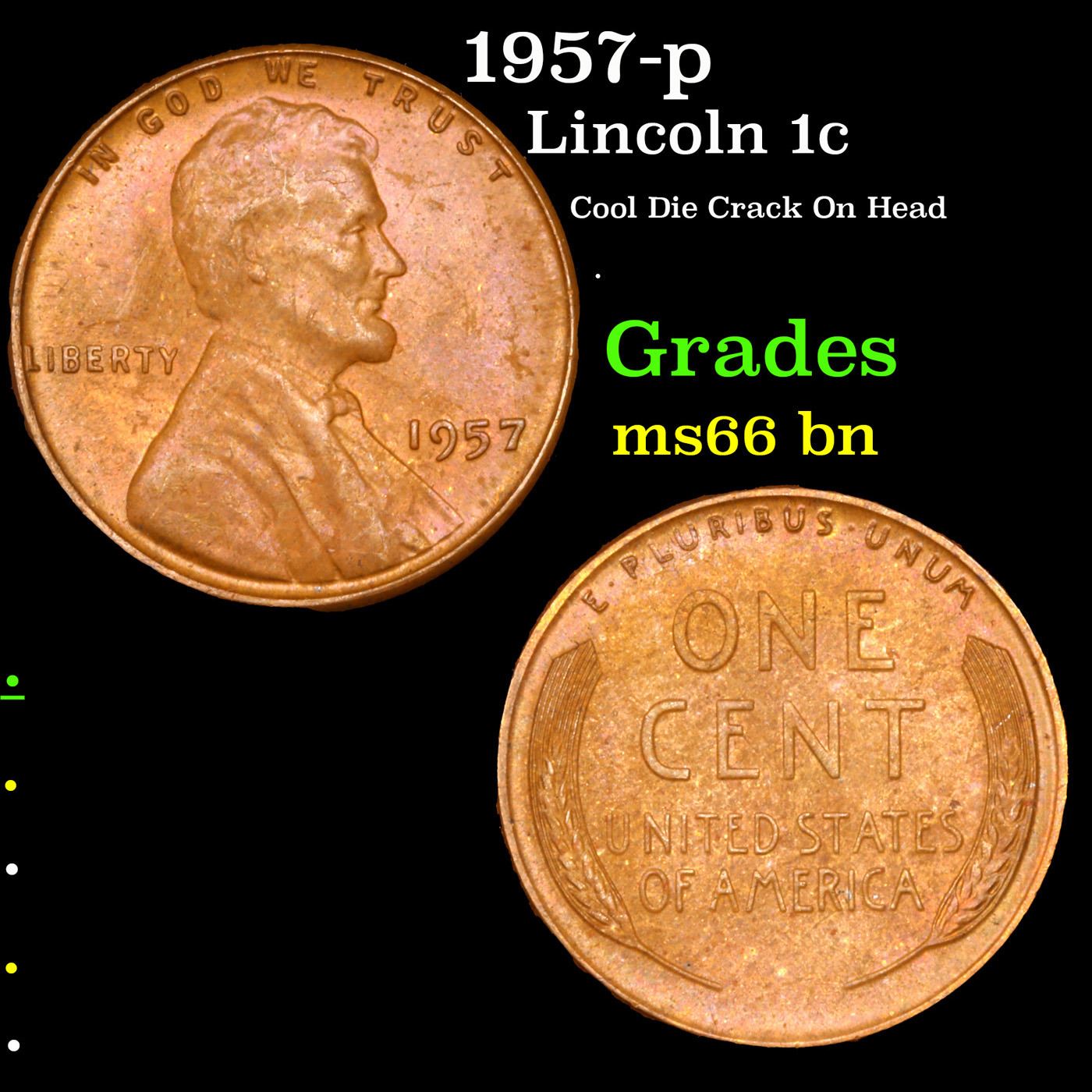1957-p Lincoln Cent 1c Grades GEM+ Unc BN.