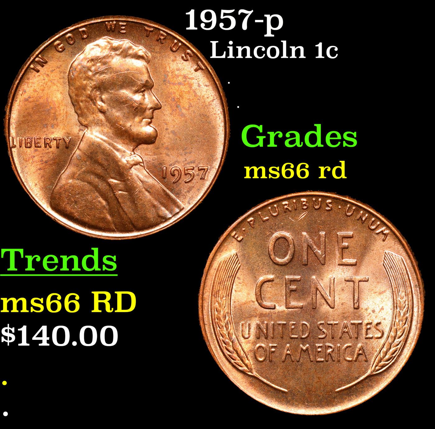 1957-p Lincoln Cent 1c Grades GEM+ Unc RD.