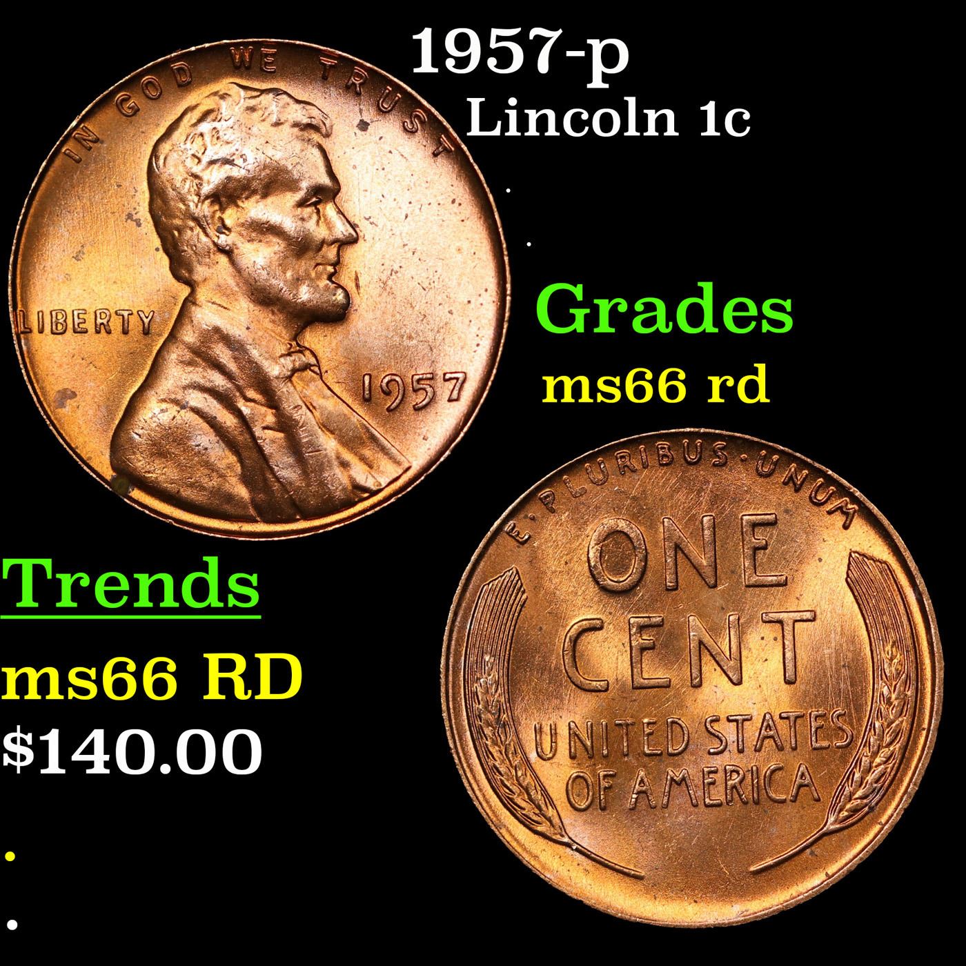 1957-p Lincoln Cent 1c Grades GEM+ Unc RD.