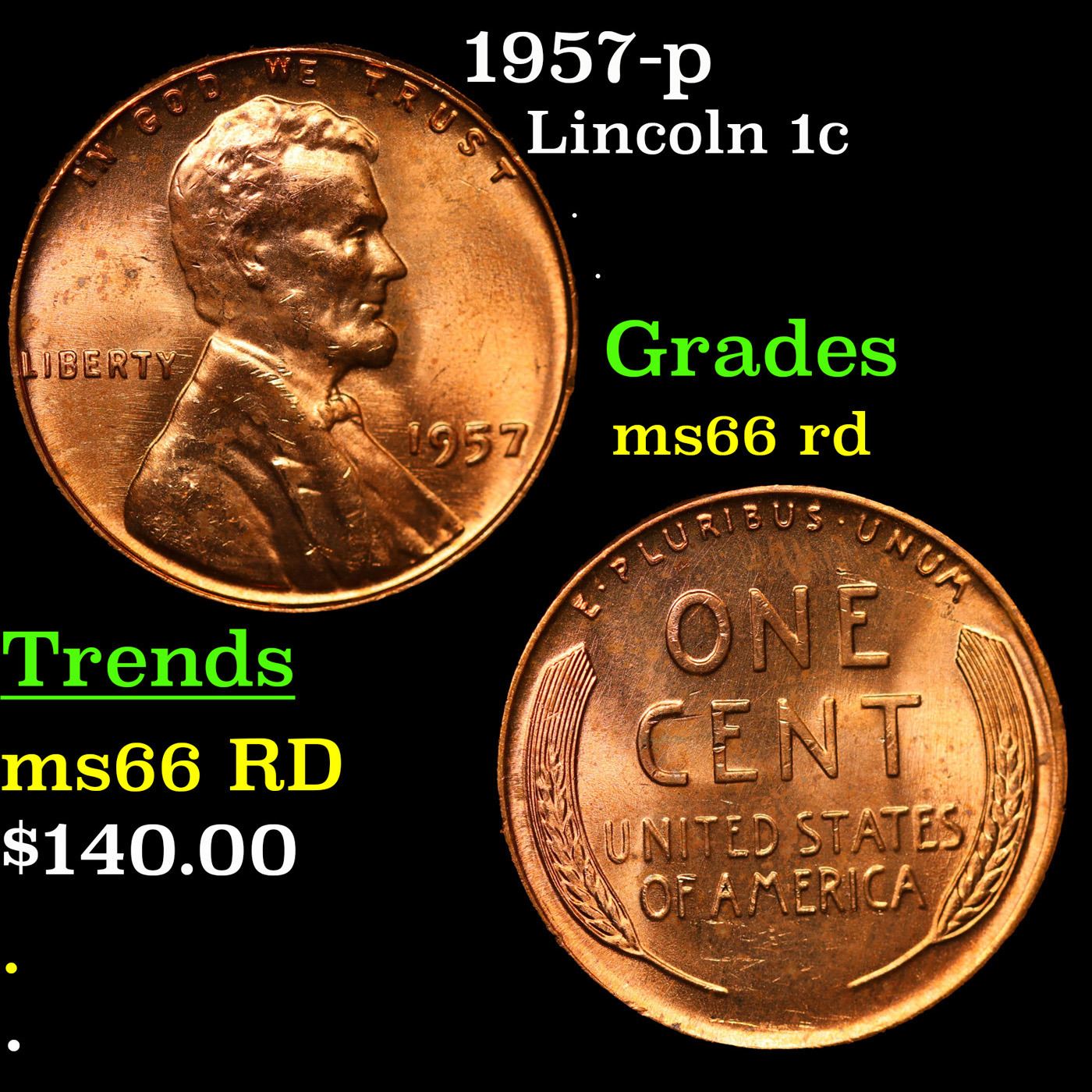 1957-p Lincoln Cent 1c Grades GEM+ Unc RD.