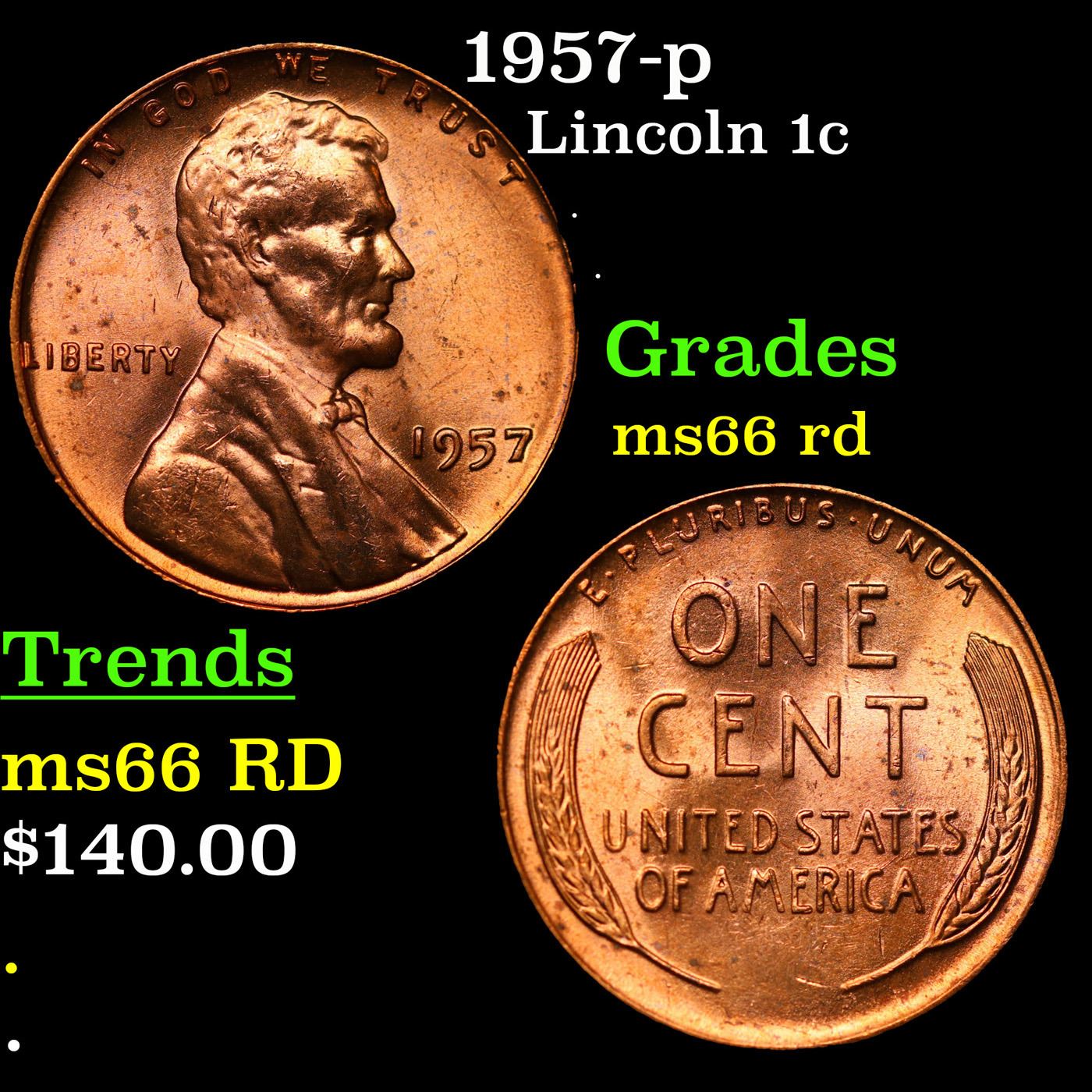 1957-p Lincoln Cent 1c Grades GEM+ Unc RD.
