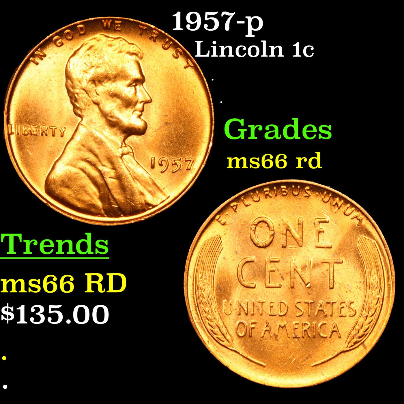 1957-p Lincoln Cent 1c Grades GEM+ Unc RD.