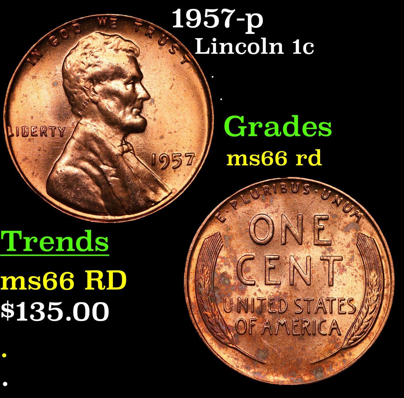 1957-p Lincoln Cent 1c Grades GEM+ Unc RD.
