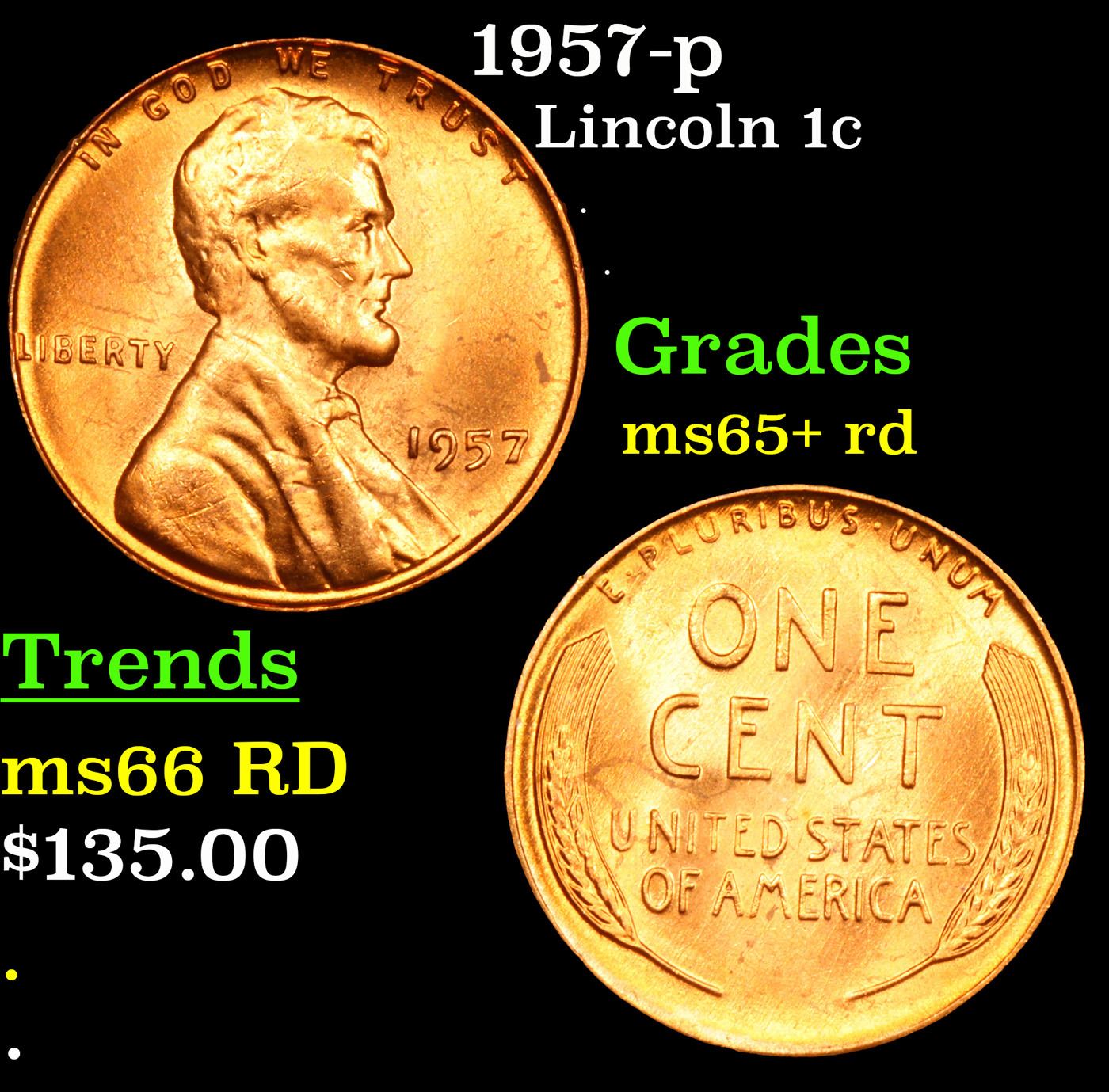 1957-p Lincoln Cent 1c Grades Gem+ Unc RD.