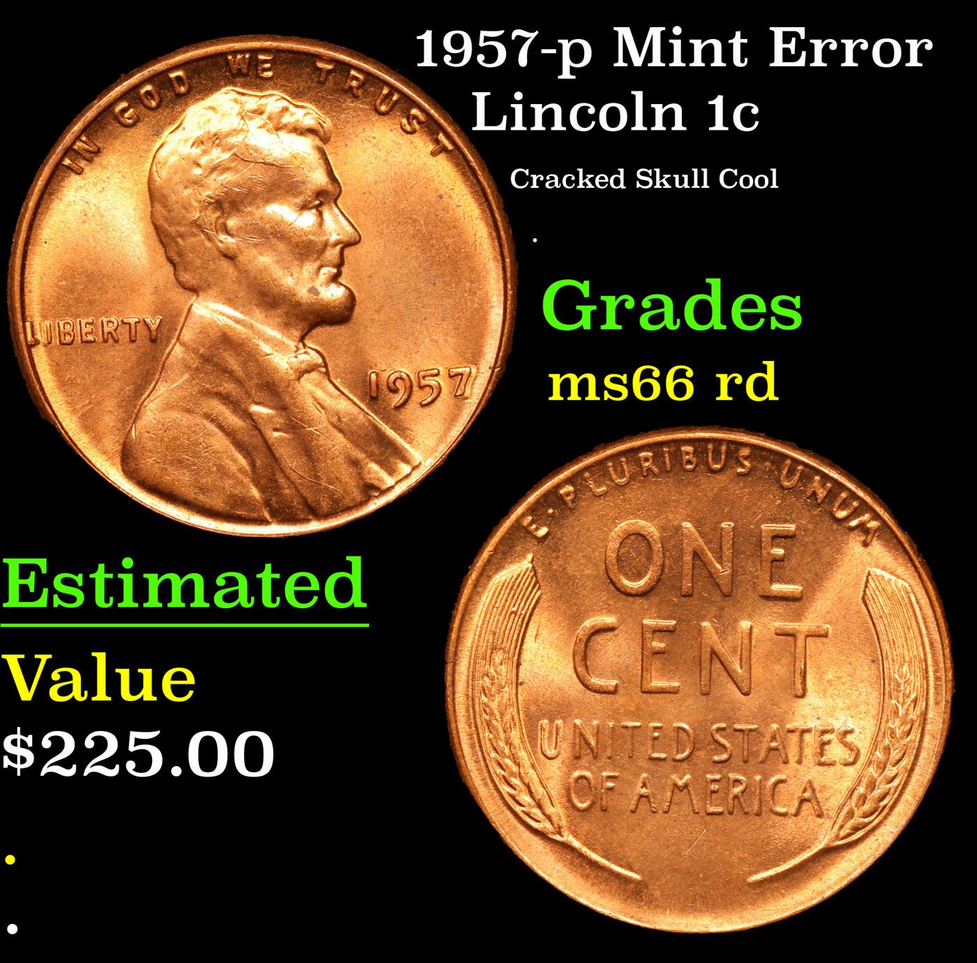 1957-p Mint Error Lincoln Cent 1c Grades GEM+ Unc RD.