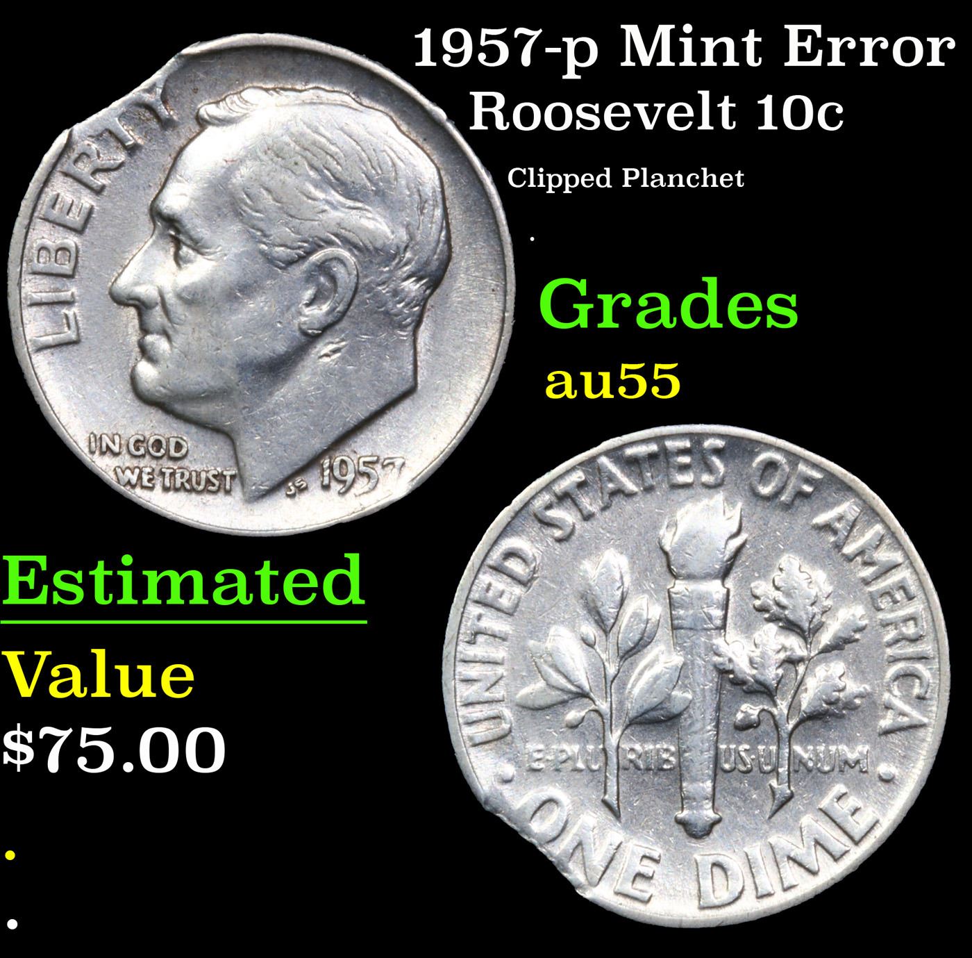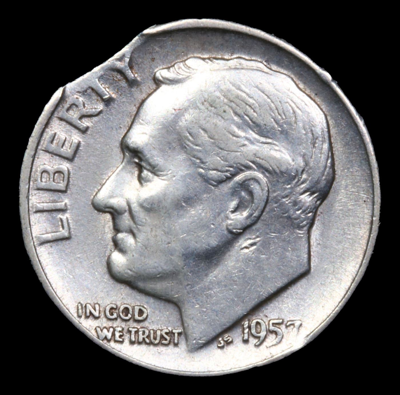 1957-p Mint Error Roosevelt Dime 10c Grades Choice AU.