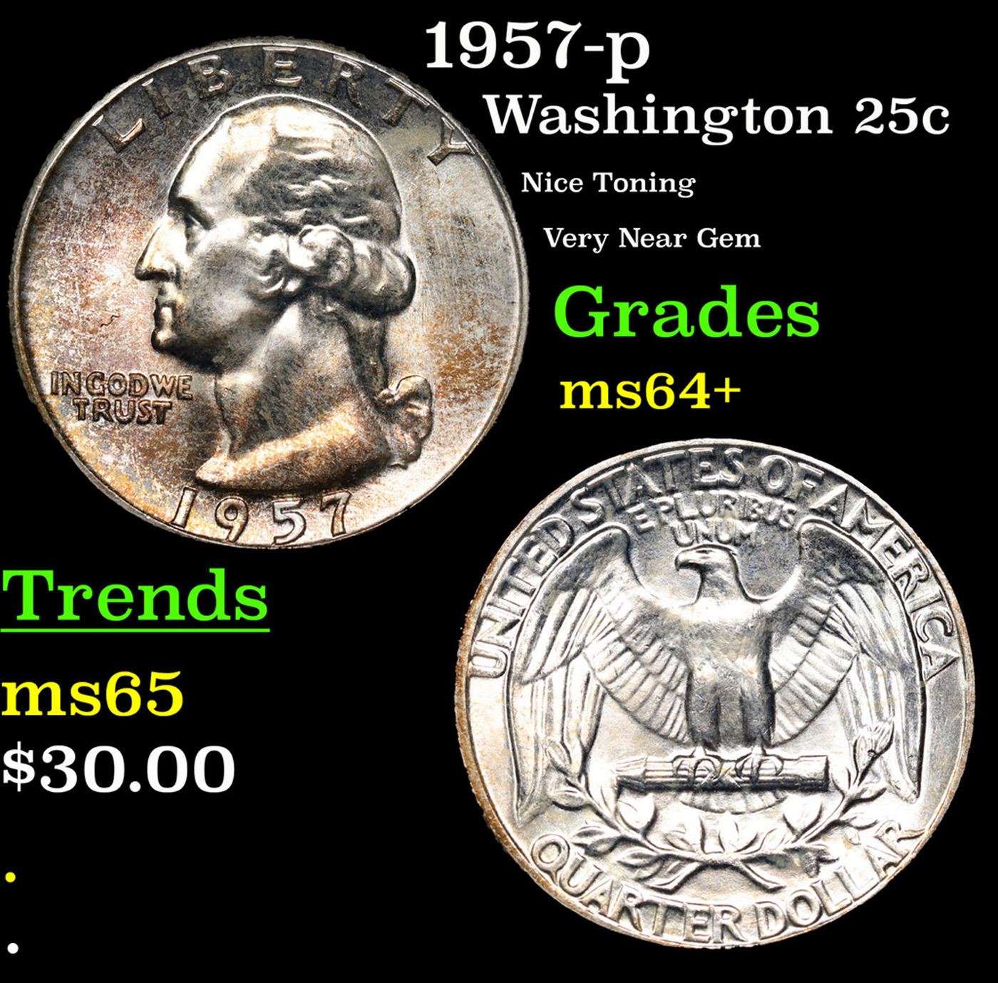 1957-p Washington Quarter 25c Grades Choice+ Unc.