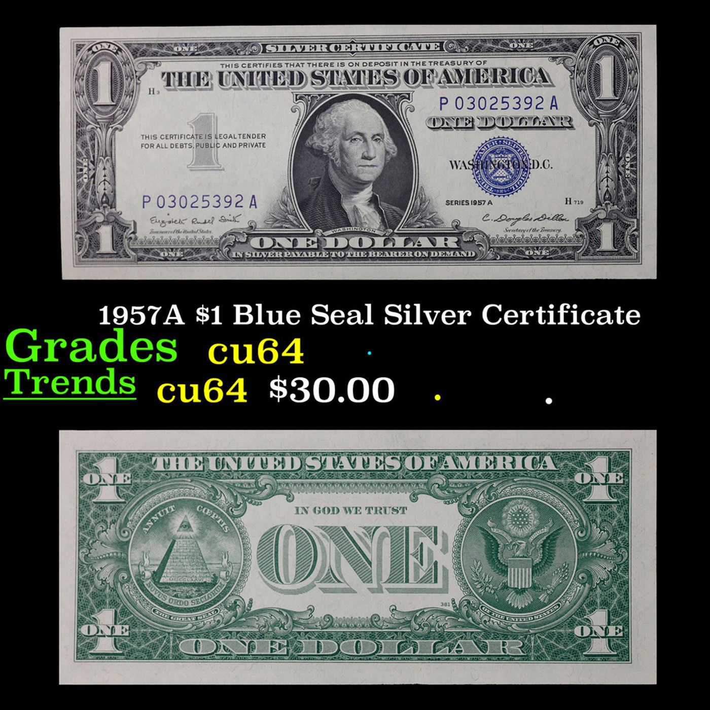 1957A $1 Blue Seal Silver Certificate Grades Choice CU.