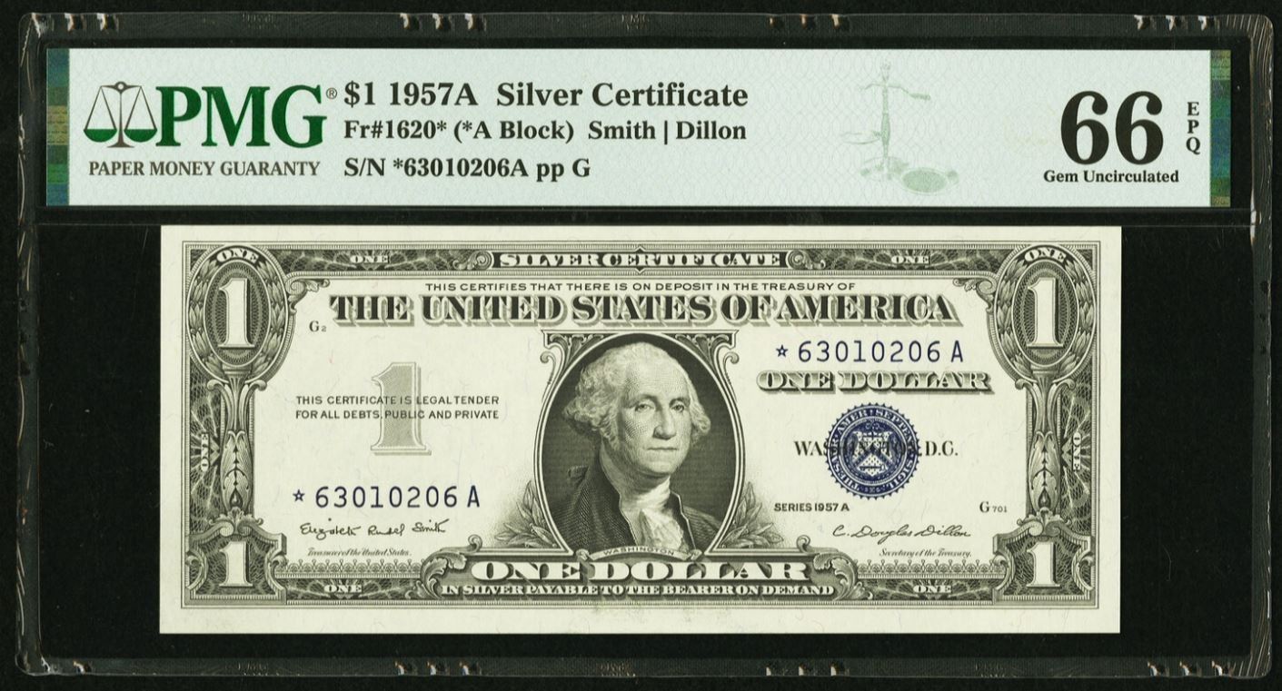 One 1957A $1 STAR Silver Certificate PMG 66EPQ.