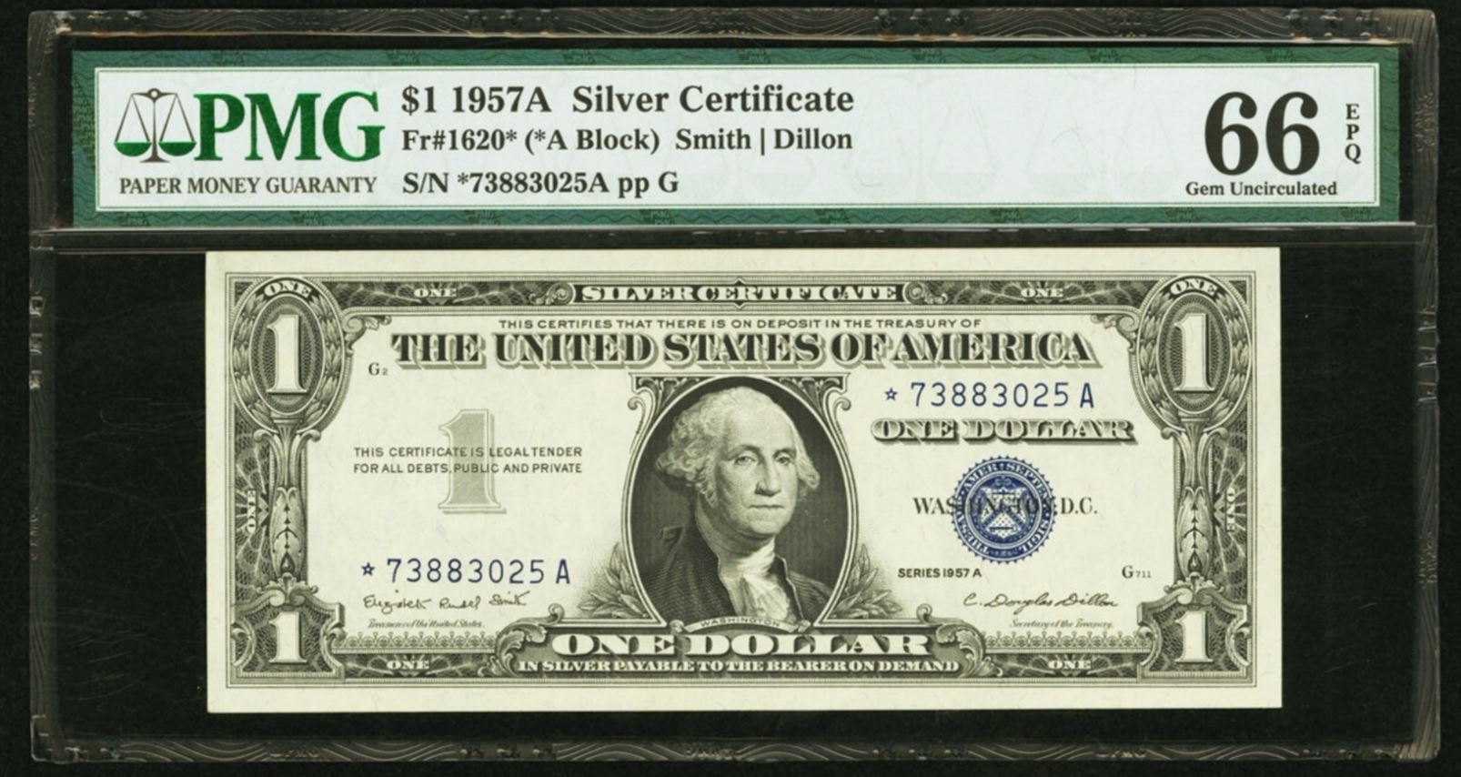 One 1957A $1 STAR Silver Certificate PMG 66EPQ.