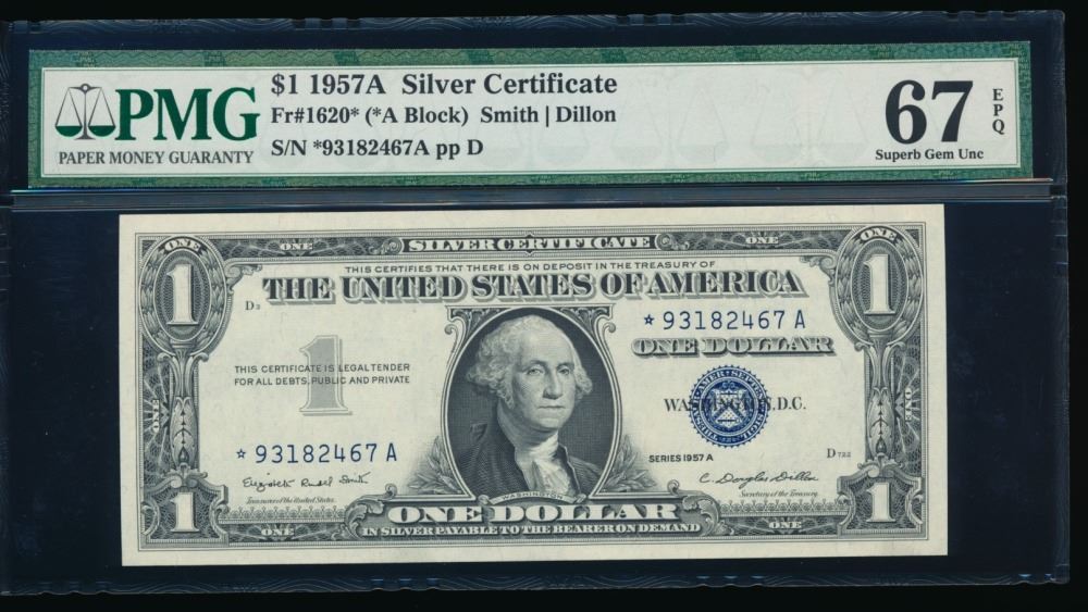 One 1957A $1 STAR Silver Certificate PMG 67EPQ.