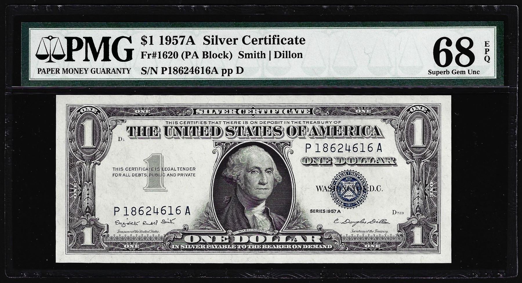 1957A $1 Silver Certificate Note Fr.1620 PMG Superb Gem Uncirculated 68EPQ