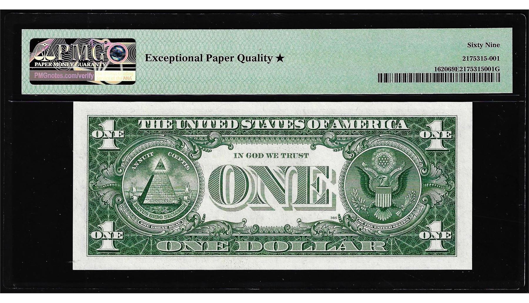 One 1957A $1 Silver Certificate Note Fr.1620 PMG Superb Gem Uncirculated 69EPQ* STAR. PMG Certified.