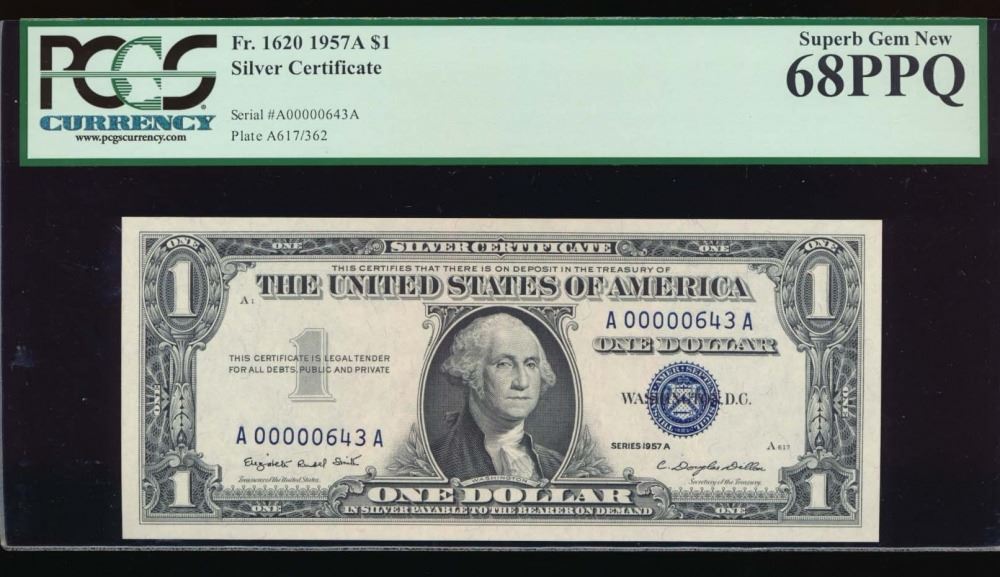 One 1957A $1 Silver Certificate PCGS 68PPQ.