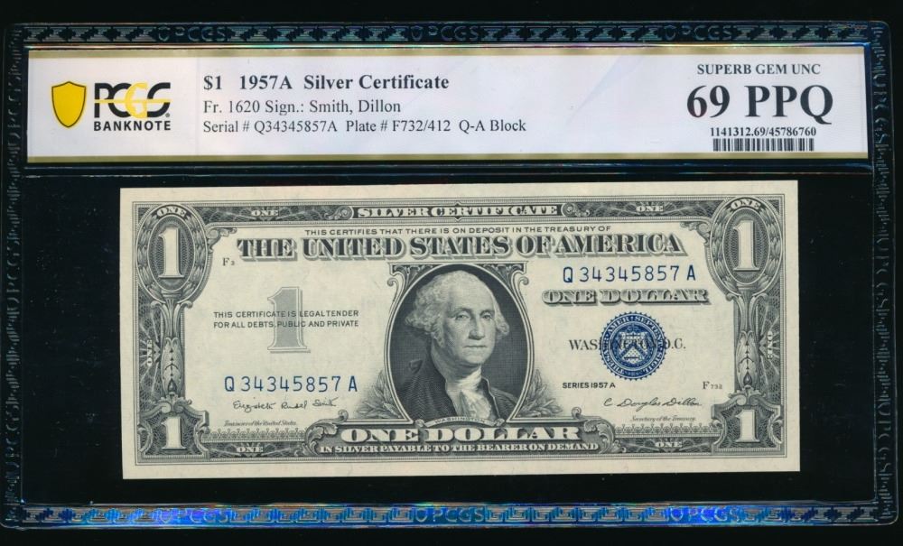 One 1957A $1 Silver Certificate PCGS 69PPQ.
