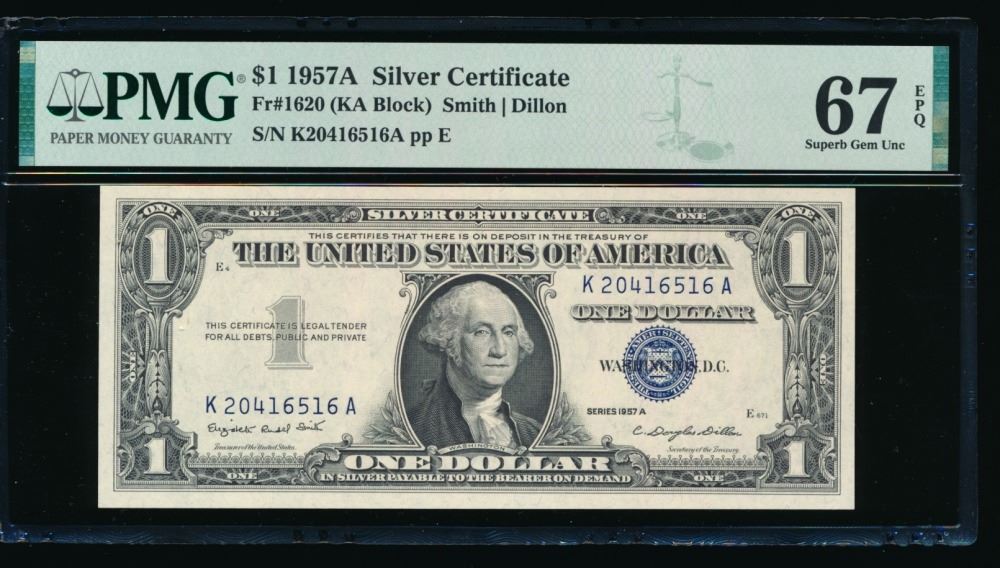 One 1957A $1 Silver Certificate PMG 67EPQ.