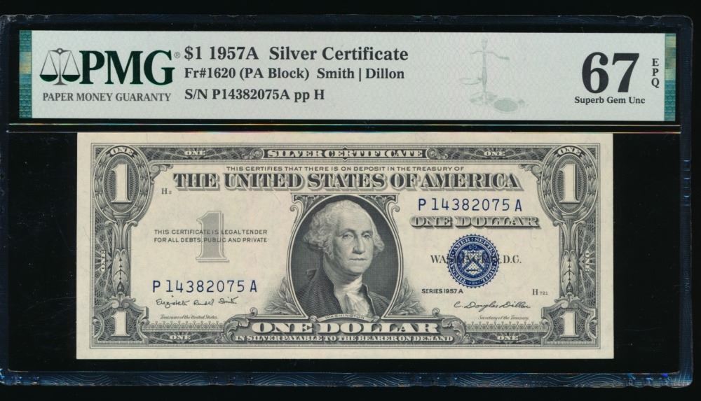 One 1957A $1 Silver Certificate PMG 67EPQ.