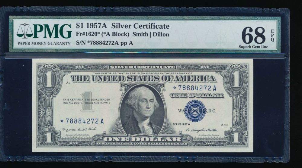 One 1957A $1 Silver Certificate PMG 68EPQ.