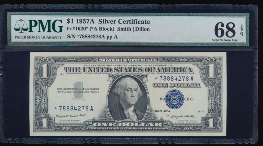 One 1957A $1 Silver Certificate PMG 68EPQ.
