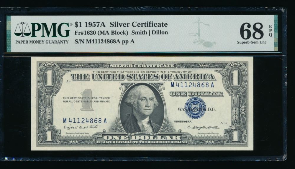 One 1957A $1 Silver Certificate PMG 68EPQ.
