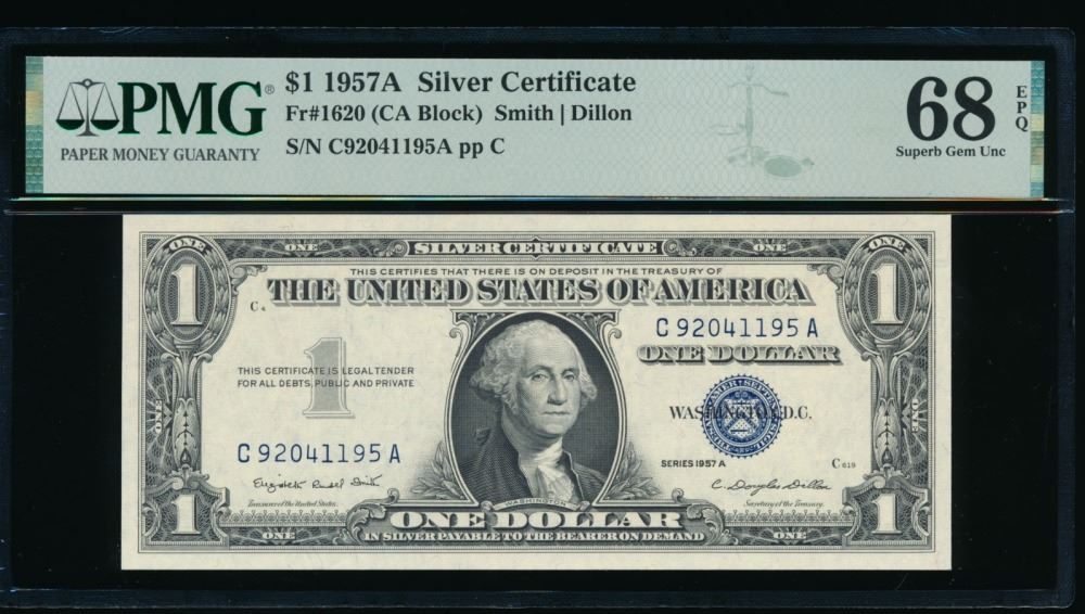 One 1957A $1 Silver Certificate PMG 68EPQ.