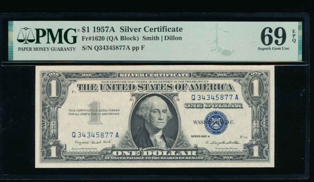 One 1957A $1 Silver Certificate PMG 69EPQ.