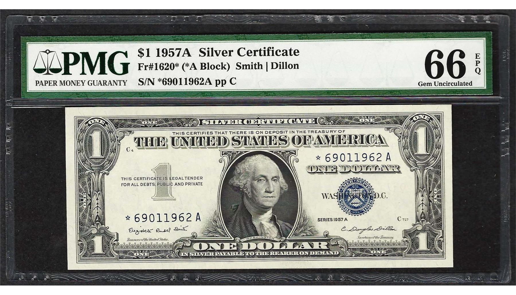 1957A $1 Silver Certificate STAR Note Fr.1620* PMG Gem Uncirculated 66EPQ