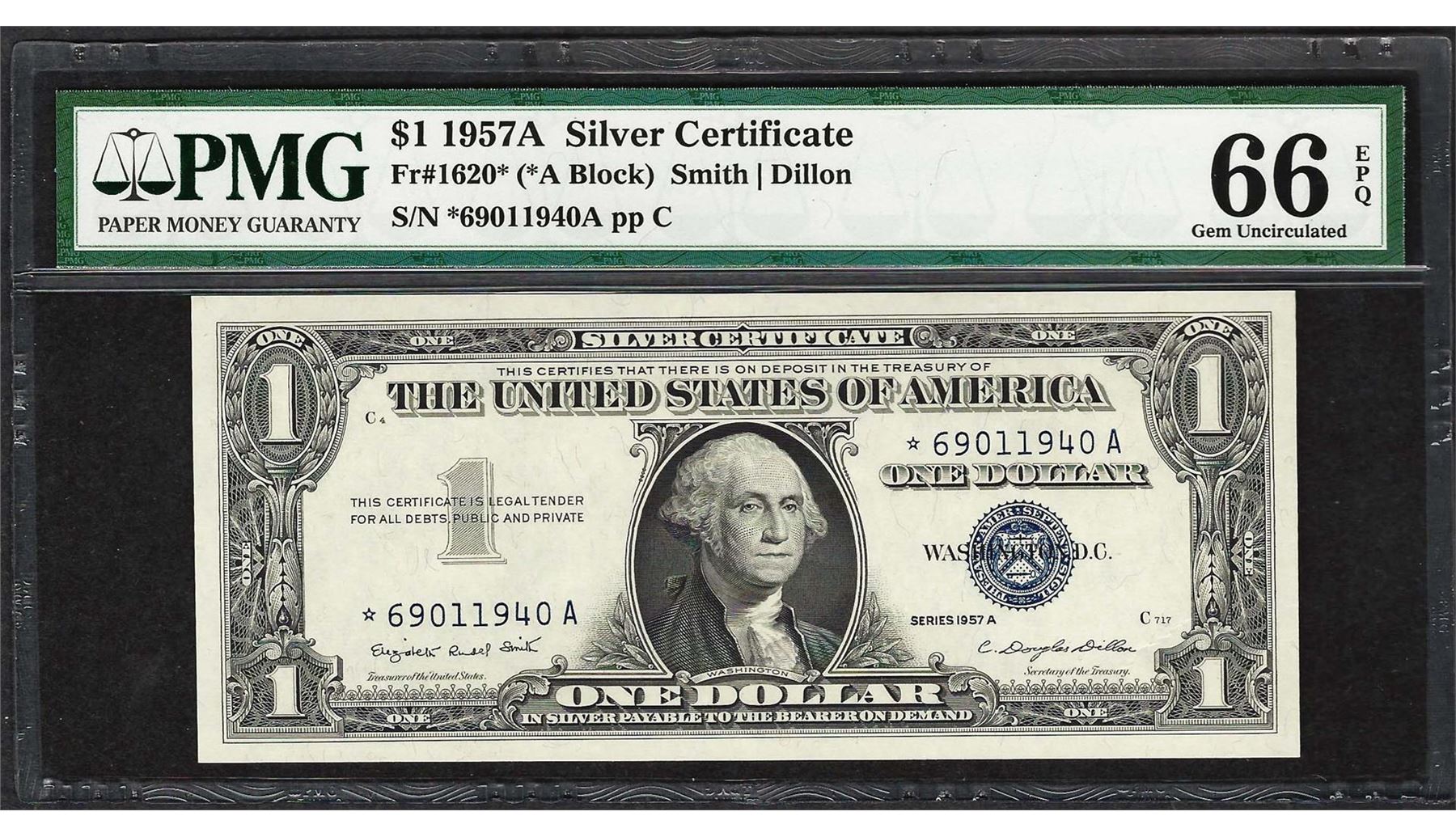 1957A $1 Silver Certificate STAR Note Fr.1620* PMG Gem Uncirculated 66EPQ