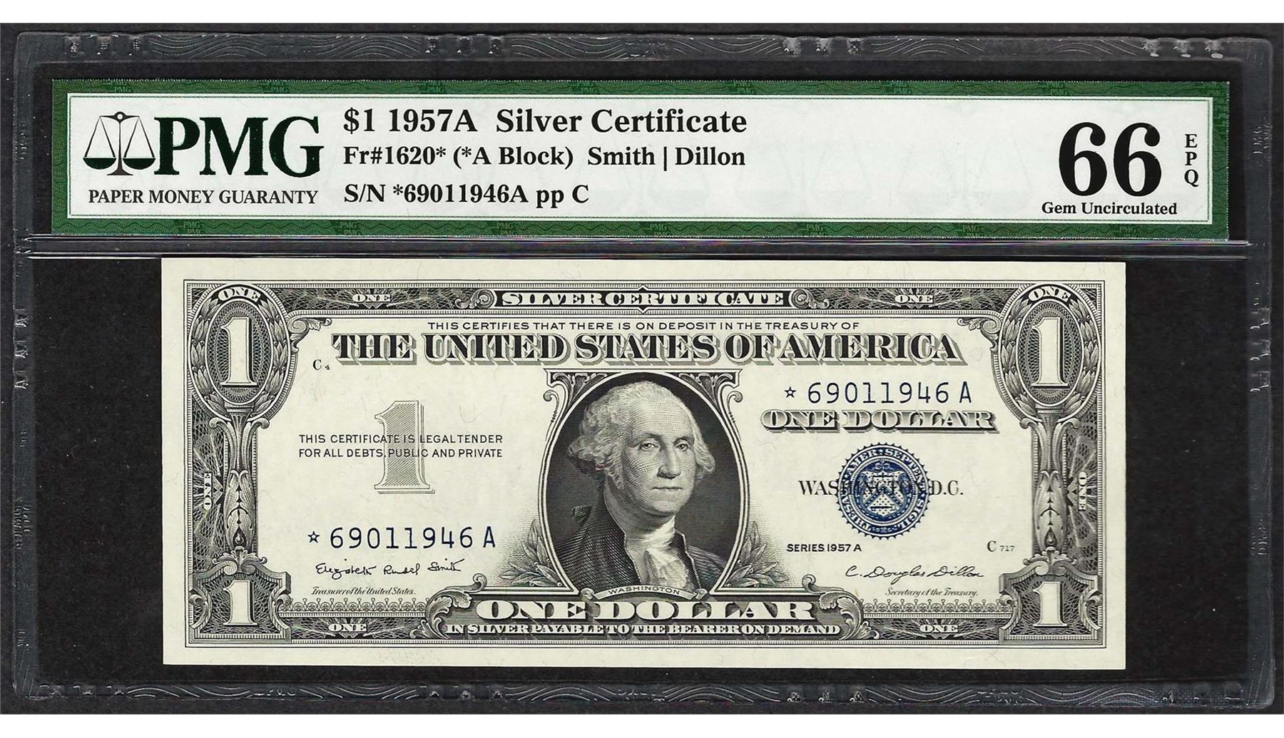 1957A $1 Silver Certificate STAR Note Fr.1620* PMG Gem Uncirculated 66EPQ