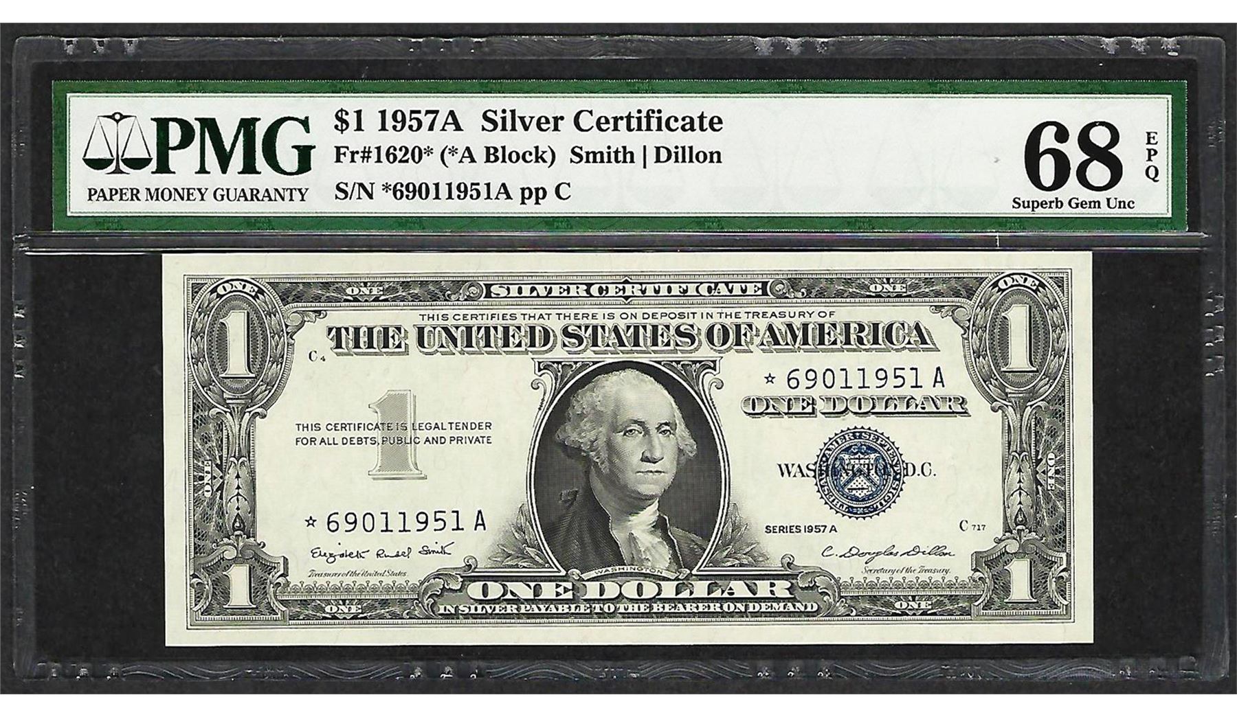 1957A $1 Silver Certificate STAR Note Fr.1620* PMG Superb Gem Uncirculated 68EPQ