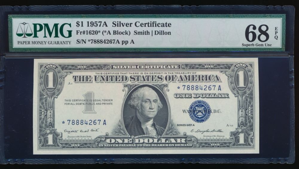 One 1957A $1 Silver Certificate Star Note PMG 68EPQ.