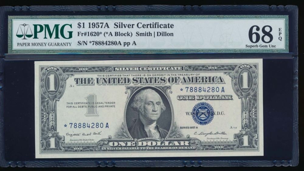One 1957A $1 Silver Certificate Star Note PMG 68EPQ.