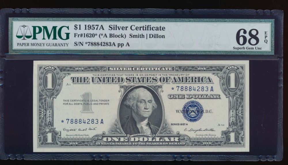 One 1957A $1 Silver Certificate Star Note PMG 68EPQ.
