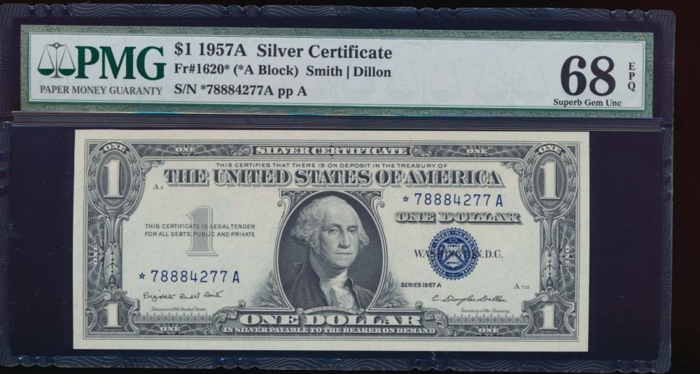 One 1957A $1 Star Silver Certificate PMG 68EPQ.