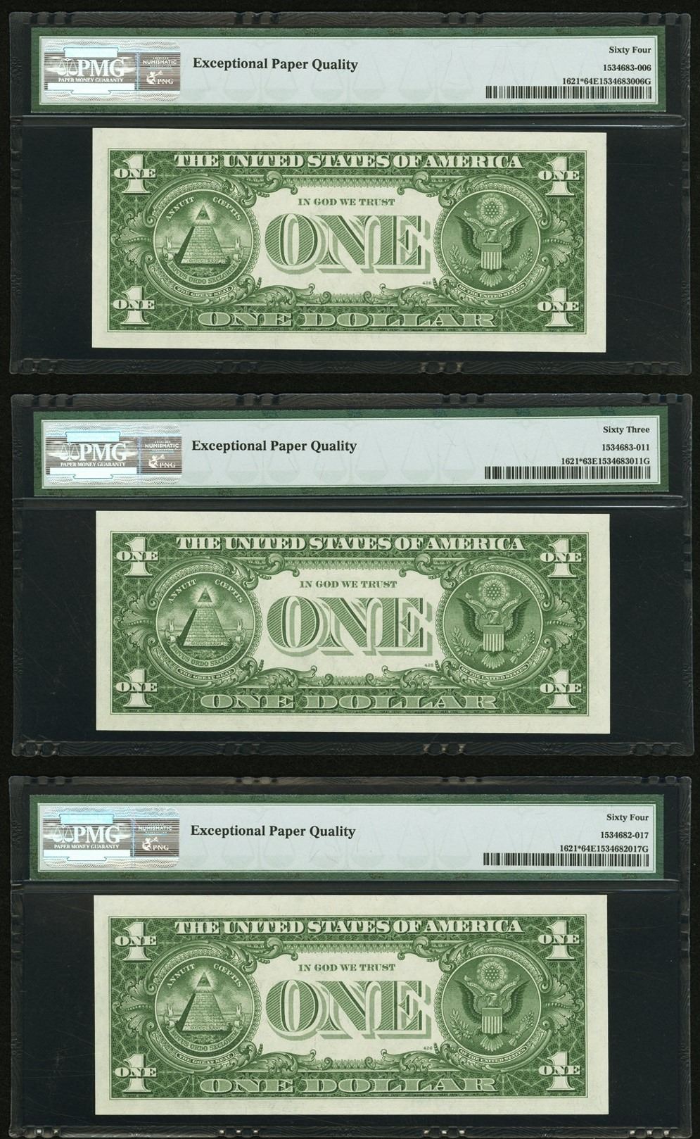 One 1957B $1 (5) Consecutive Silver Certificate STAR Notes PMG.