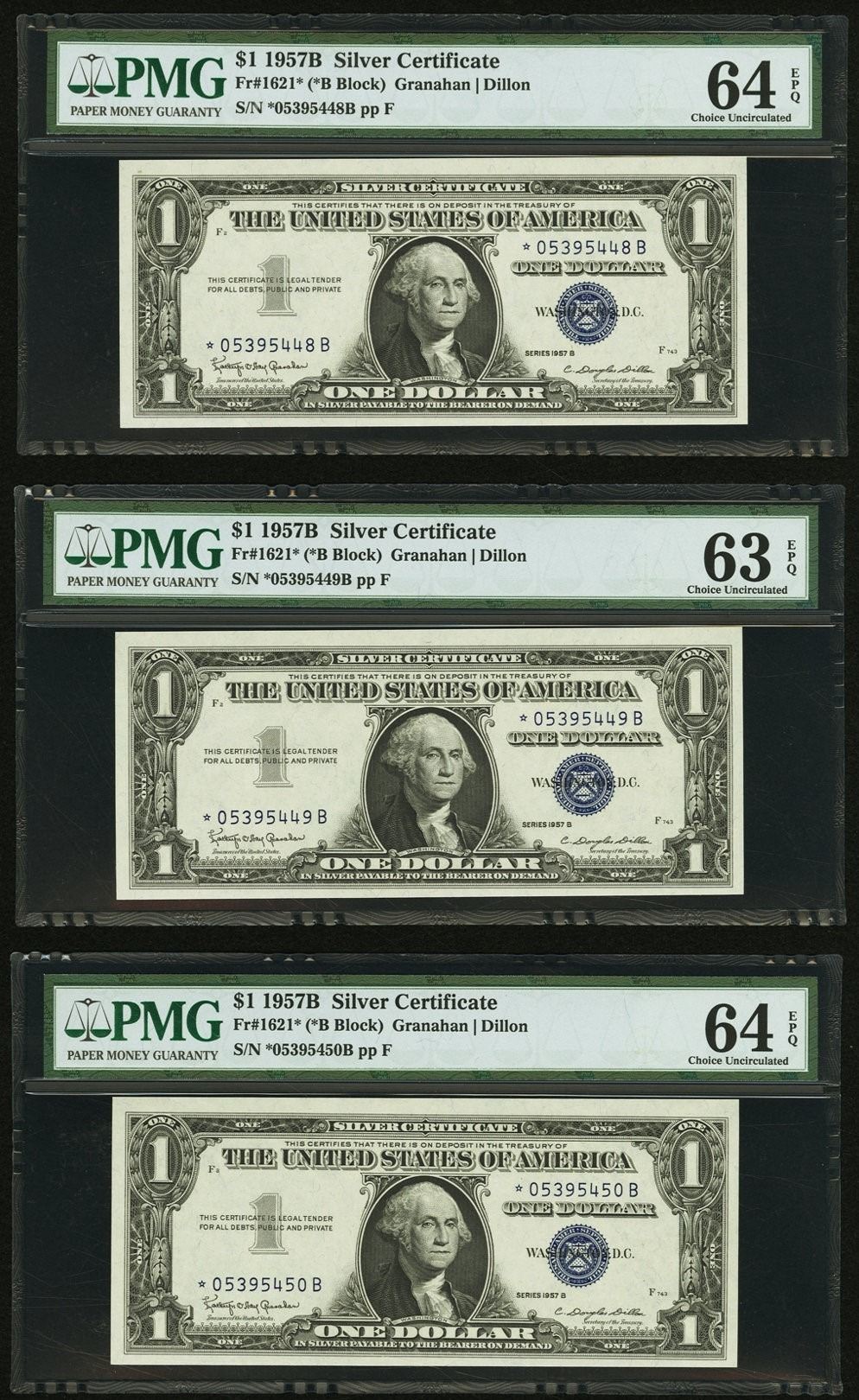 One 1957B $1 (5) Consecutive Silver Certificate STAR Notes PMG.