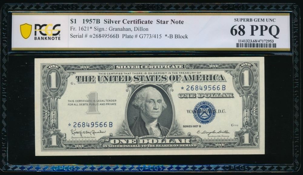 One 1957B $1 STAR Silver Certificate PCGS 68PPQ.